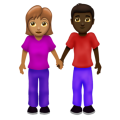 | Poin kode | U+1F469 1F3FD 200D 1F91D 200D 1F468 1F3FF |